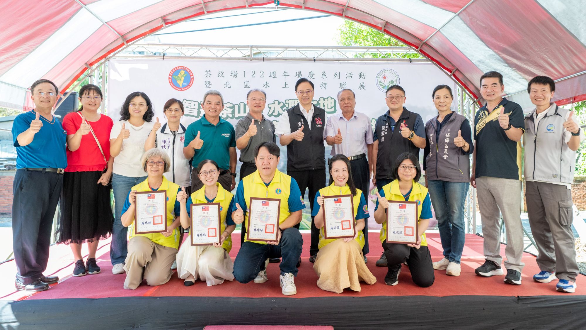 桃園市長張善政18日上午前往楊梅區,出席「農業部茶及飲料作物改良場122週年場慶系列活動暨北區水土保持聯展」。張善政表示,桃園茶農在全國各項茶葉競賽中屢創佳績,成果有目共睹,感謝茶改場長期專業輔導與技術支持,與市府持續攜手推動桃園茶產業向上發展。