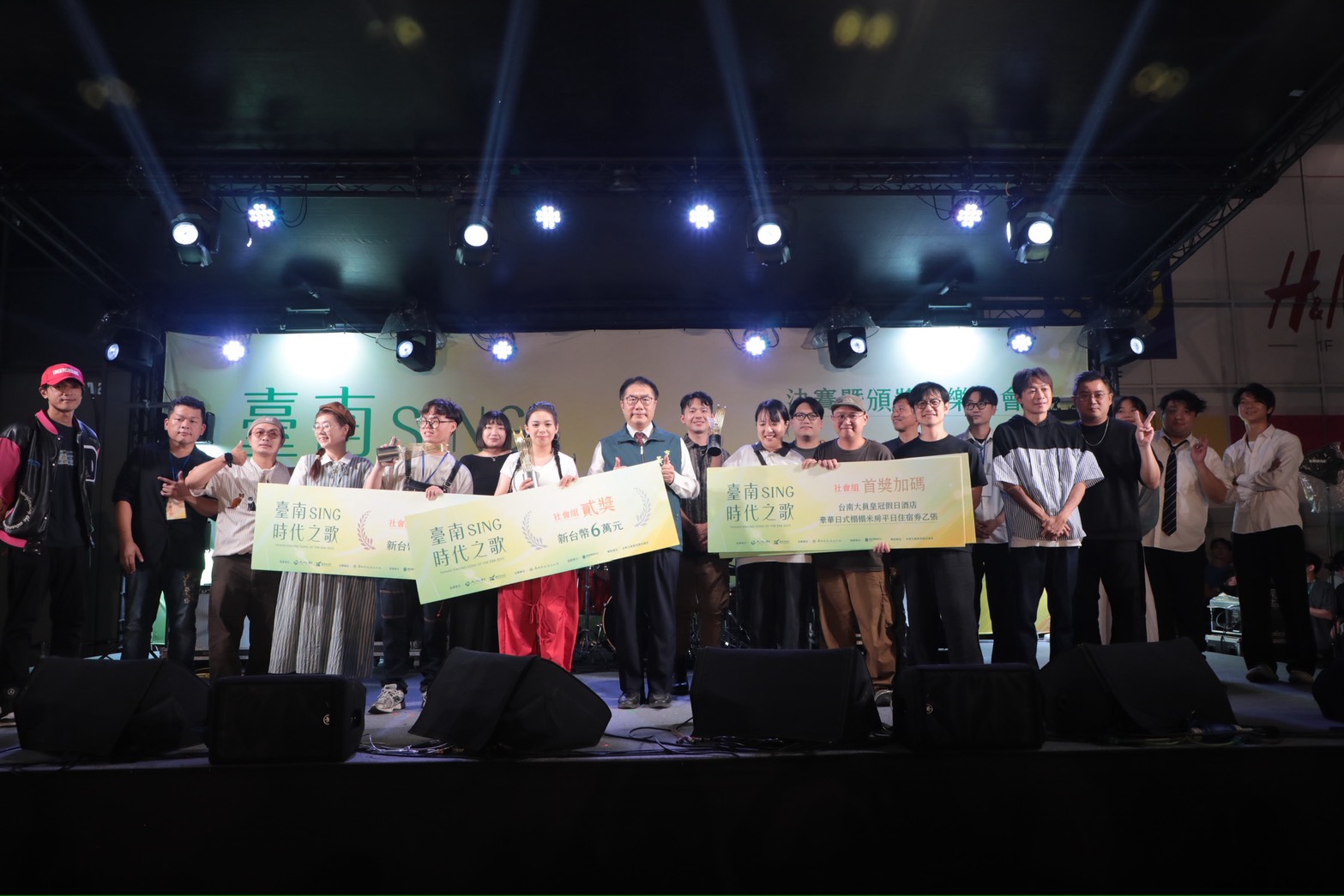 黃偉哲親臨現場頒獎並表示,sing時代之歌是府城原創音樂的重要品牌,持續挖掘在地音樂人才,鼓勵不同世代以創作展現對城市的熱愛。今年總獎金高達40萬元,明年市府將進一步加碼,並且入圍就有獎,以更具實質的支持,鼓勵更多音樂人勇敢發聲,展現台南文化厚度與創意能量。