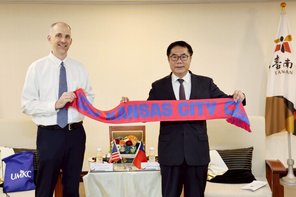 Jeremy Slagoski主席此行代表盧卡斯市長與姊妹市協會向黃市長致意,他表示,台南市是堪薩斯市早期締結且持續活躍的姊妹市之一,期待與台灣人社群攜手推進兩市關係。Slagoski主席身兼密蘇里大學堪薩斯分校(UMKC)人文社會科學院的助理院長,此次也拜訪國立台南大學,他認為雙方在教育領域的合作潛力甚鉅,盼為城市交流再添新頁。