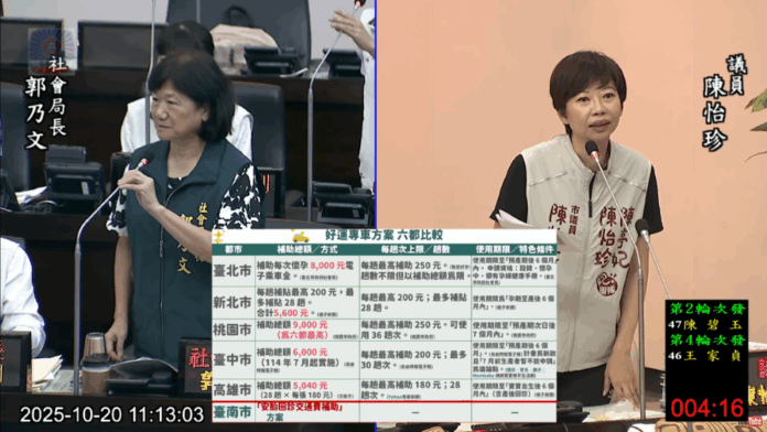 台南市議員陳怡珍20日於市議會質詢時指出,持續為孕媽咪請命,呼籲市府儘速推動「好孕專車」方案,提供孕產婦便利且安全的交通補助服務。陳怡珍表示,目前全台多個縣市皆已實施孕婦乘車補助政策,包括台北市、新北市、新竹市、嘉義市、高雄市、屏東縣及桃園市等。其中桃園市今年推出的方案補助金額高達全台最高的9,000元,服務對象更擴及從懷孕期至產後7個月;台中市則於7月上路的「好孕專車」方案中,提供最高6,000元的乘車補助,適用期間從產前9個月到產後6個月。