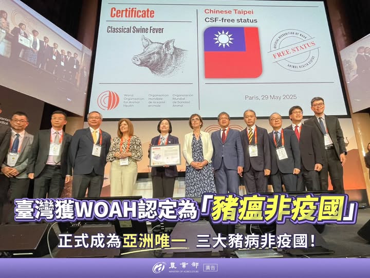 據資料指出,豬瘟為世界動物衛生組織(WOAH)表列應通報疾病,染疫豬隻會全身性出血、流死產,是高度傳染性高死亡率的疾病,亞洲地區國家均遭受豬瘟疫病的危害。 臺灣自民國94年於彰化縣發現最後1例案例後,未再有發現豬瘟確診病例。今年5月,第92屆世界動物衛生組織年會上,世界動物衛生組織(WOAH)正式認證臺灣為「豬瘟非疫國」,並由我國首席獸醫官,農業部杜文珍常務次長率代表團一同上台領取「豬瘟非疫國」證書,與臺灣養豬產業纏鬥超過百年的傳統豬瘟,終於正式畫下句點,代表我國繼口蹄疫與非洲豬瘟後,三大豬病均取得WOAH認證,成為亞洲唯一同時達標的非疫區國家。這不只是防檢疫的重大里程碑,更是讓臺灣豬肉與畜牧產品前進國際市場的最佳保證,沒想到不到半年的時間,臺灣再度傳出豬瘟死灰復燃,原本希望臺灣豬打開更大國際舞台的期待落空,臺灣養豬業未來勢必陷入生存困境。