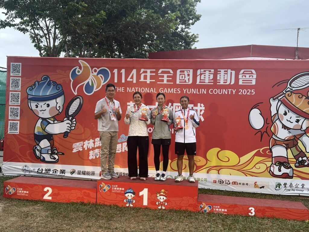 軟式網球女子組單打賽 郭千綺 銀牌(左2)。