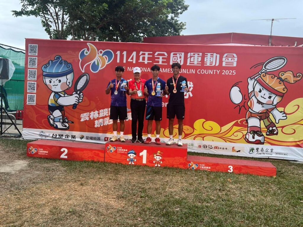 軟式網球男子組單打賽陳柏邑金牌、陳郁勲銀牌。