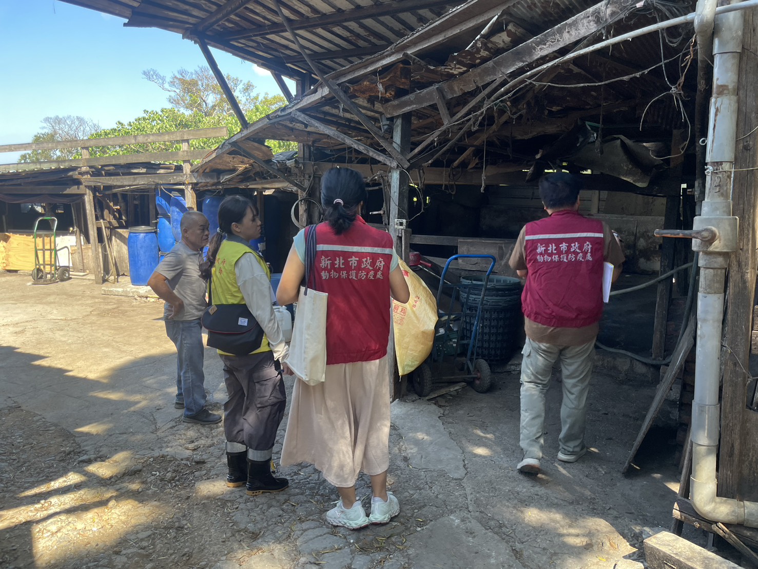 市府應變中心平時自主巡查新北市養豬場皆未有異常情形,10月22日台中疫情發生,隨即啟動聯合稽查小組清查本市107間養豬場,偕同新北市養豬協會協助66場廚餘養豬廠停止使用廚餘及添購飼料餵飼,確認廚餘流向及處理廚餘銷毀回收。此外,運豬車輛全面啟動管制措施,利用GPS運豬車管制系統線上即時監控車輛移動軌跡,23日0時起聯合警察局全面管制禁止運豬車輛載運及進入新北市。