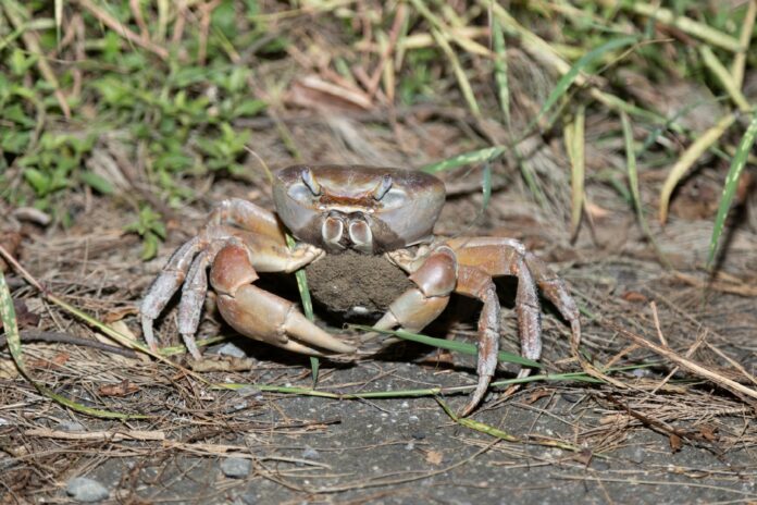 台江處自111年起持續辦理陸蟹公民科學家計畫,透過護蟹志工之招募及培訓,讓關心陸蟹生態的民眾共同參與護蟹工作,今年已邁入第4年,參與護蟹工作的護蟹志工共57位,護蟹期間動員329人次,監測調查共記錄10,221隻兇狠圓軸蟹,其中包含9,297隻抱卵雌蟹。護蟹工作期間進行12次交通管制,封閉園區內部分青草崙堤防防汛道路,防止盜獵及路殺,保護7,419隻抱卵雌蟹降海釋幼遷徙。護蟹志工在多年磨練與成長下升級進化,主動加強巡護及宣導,結合內政部警政署保安警察第七總隊第七大隊(以下簡稱保七第七大隊)積極巡邏取締,守護陸蟹生態,讓大眾看見公民參與守護陸蟹的無限可能!