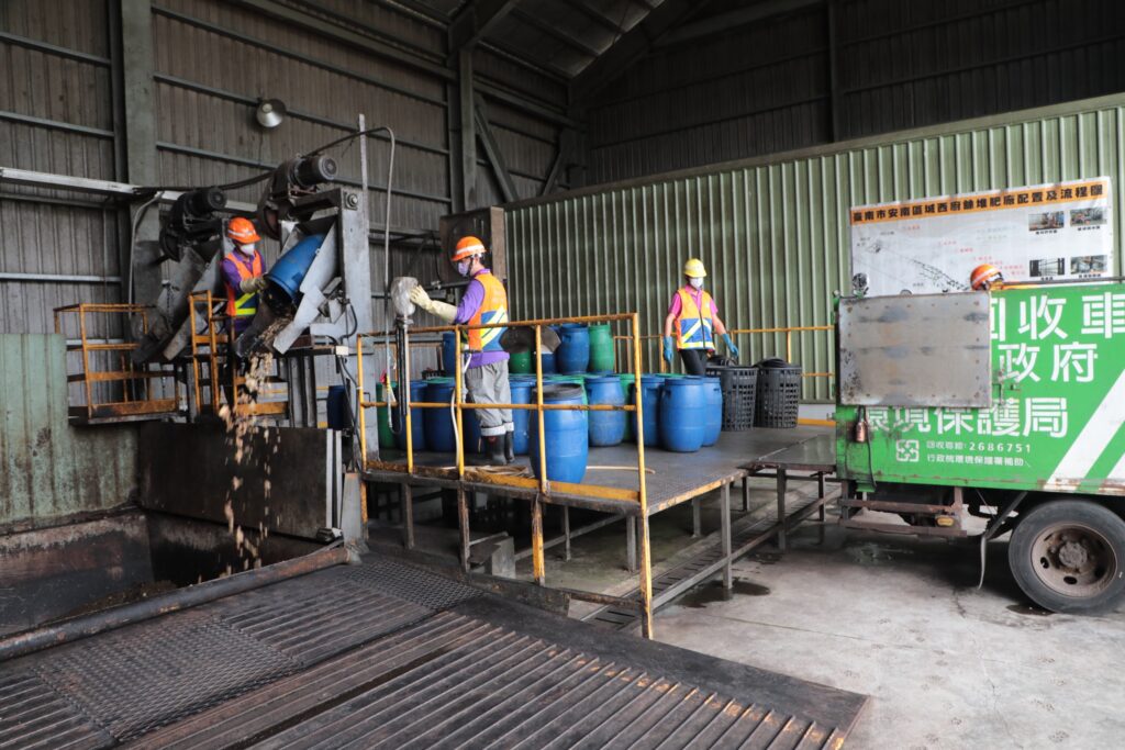 黃偉哲表示,台南市早於108年起陸續建置兩座廚餘高速發酵廠,每日合計可處理近40噸廚餘。該系統採密閉高溫自動化發酵程序,可有效降低氣味、避免露天曝曬造成環境影響,並將廚餘轉化為經農業部認證的有機肥料,實現廚餘資源化與循環再利用的目標。