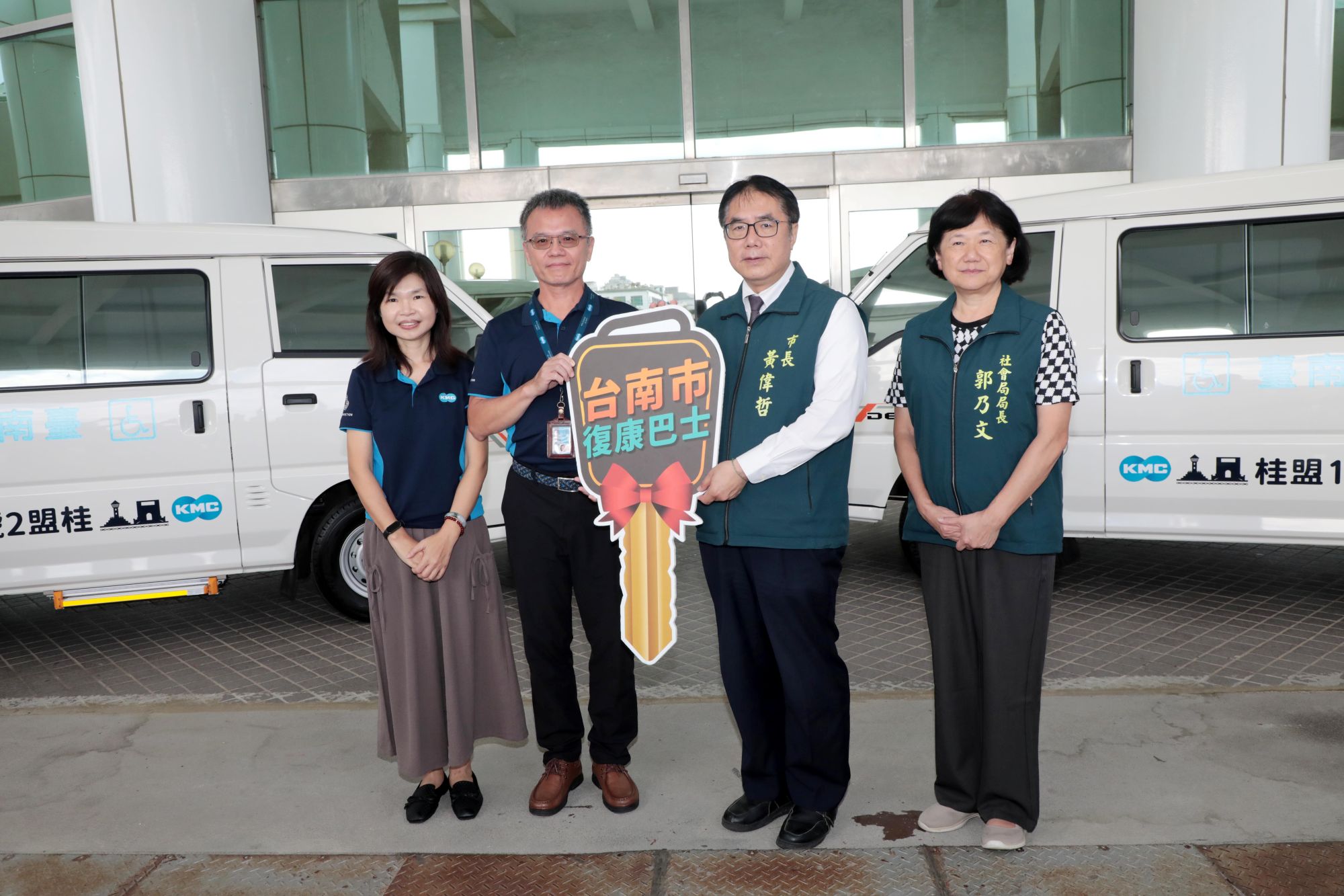 黃偉哲表示,台南市有156部復康巴士,據統計今年1月到9月共出動235600次,平均每部車每月要出動1500多次,對於車子耗損跟負荷都非常大。因此非常感謝桂盟關懷公益基金響應「照顧弱勢優先」的施政理念,捐贈2輛復康巴士,幫助身心障礙及行動不便的市民解決就醫、復健與社會參與的交通需求。市府也將持續努力推動友善無礙的交通服務,讓身障朋友都能安心出門、自在生活。