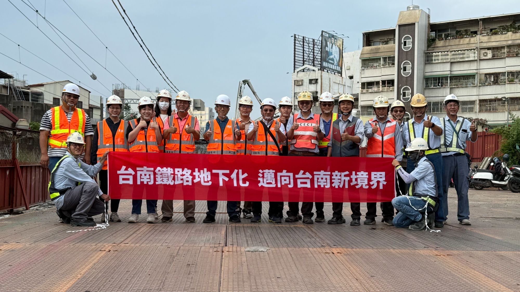 鐵道局南部工程分局說明,施工期間需克服緊臨鐵路2萬5千伏特高壓電車線施工安全及施工用地侷限之挑戰,尤其東門陸橋段受歷史文資遺構調查移置作業影響,停工長達2年,至113年8月31日全數完成文資調查及移置作業,經施工團隊合作努力趲趕,於今日完成臺南鐵路地下化全部隧道結構。