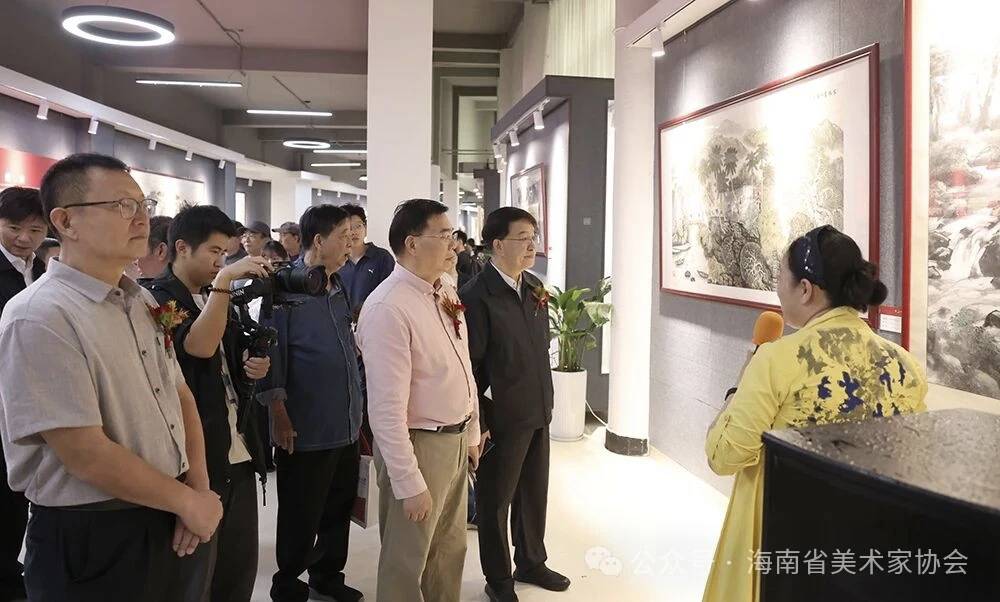 海南省文學藝術界聯合會一級巡視員馬飛,海南省委宣傳部文藝處處長陳曼燕,海南省委宣傳部一級調研員梁健,海南省教育廳高等教育處一級調研員劉世瓊,海南師範大學副校長、美術學院院長張引,海南工商職業學院副校長陳立麗,海南省人大代表、北京師範大學海口附屬學校書記、校長陸炳榮,中國美術家協會原理事、海南省美術家協會名譽主席鄧子芳,中國美術家協會原理事、海南省美協名譽主席陳茂葉,中國美術家協會理事、海南省文聯副主席、海南省美協主席阮江華,海南科技職業大學校長張洪田,海南科技職業大學黨委書記、政府督導專員楊海出席開幕式,由海南科技職業大學副校長張小瑩主持。