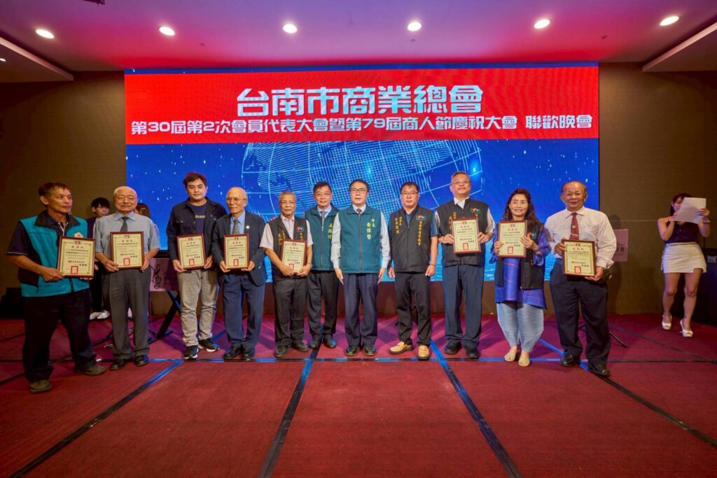 市商會理事長宋俊明致詞表示,會員們齊聚一堂,共同慶祝商業總會成立79週年的慶祝大會光輝里程,市商會從創會初期的艱辛奮鬥,到今日的蓬勃發展,這一路的歷程,見證了地方商業的興盛與產業的轉型,更凝聚商界理監事同仁守望相助、共榮共進的毅力與精神,為不斷鼓勵百工百業擴大推動友善經營環境,特別今年度大會頒發得獎臺南市優良商號、績優商業從業人員獎項也歷年之最。