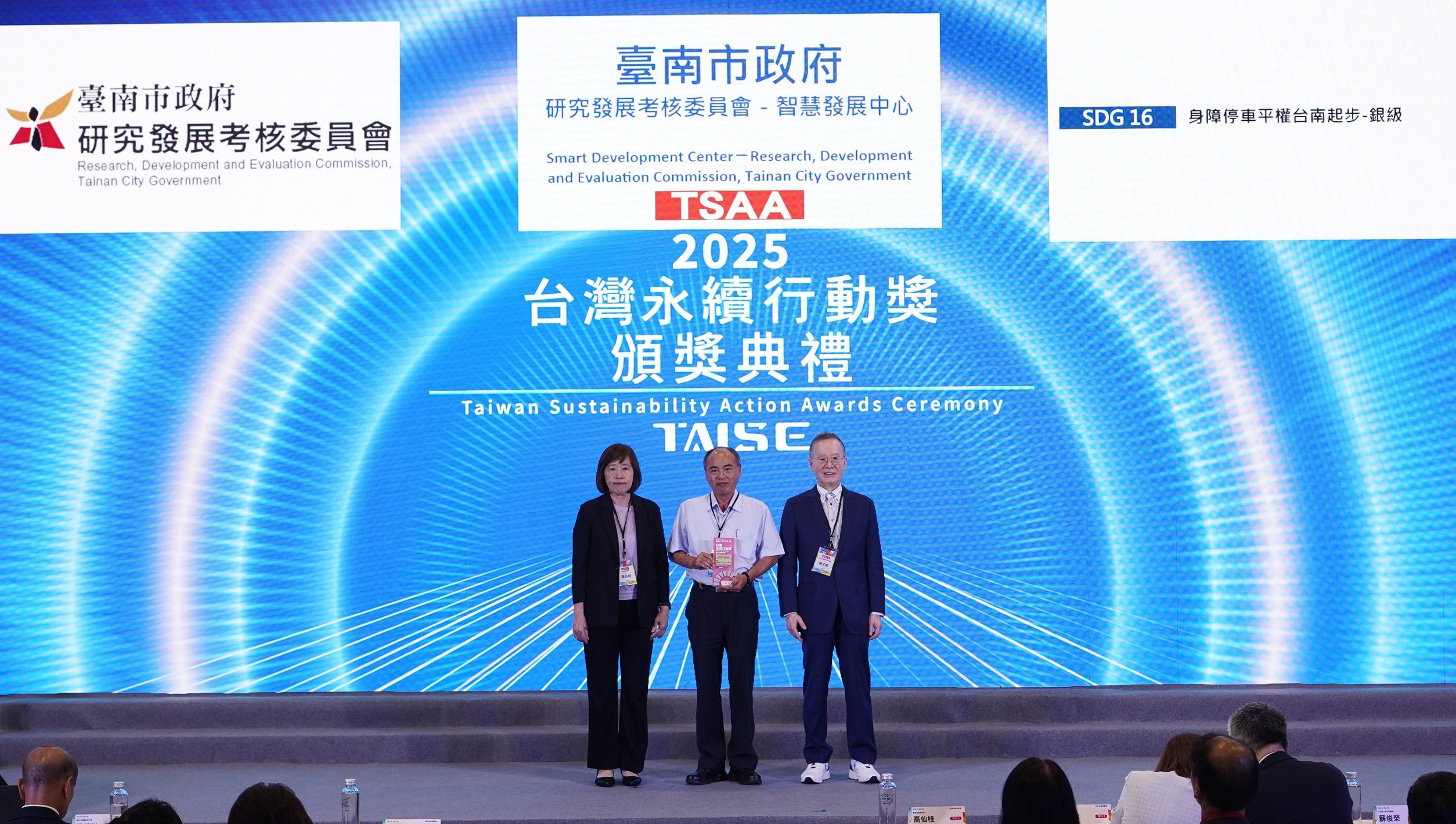 臺南以「身障停車平權臺南起步」主題,透過「SOA城市數據交換整合平台」推動跨域資料整合,首創縱向介接衛福部社家署全國身障車牌查驗服務,橫向串聯研考會、社會局、交通局及警察局跨域合作,解決跨縣市查驗難題。此創新服務讓全國身障者能即時享有停車優惠、違規取締更精準,保障身障者權益並提升執法正確性,榮獲2025第五屆TSAA台灣永續行動獎SDG16銀級獎。