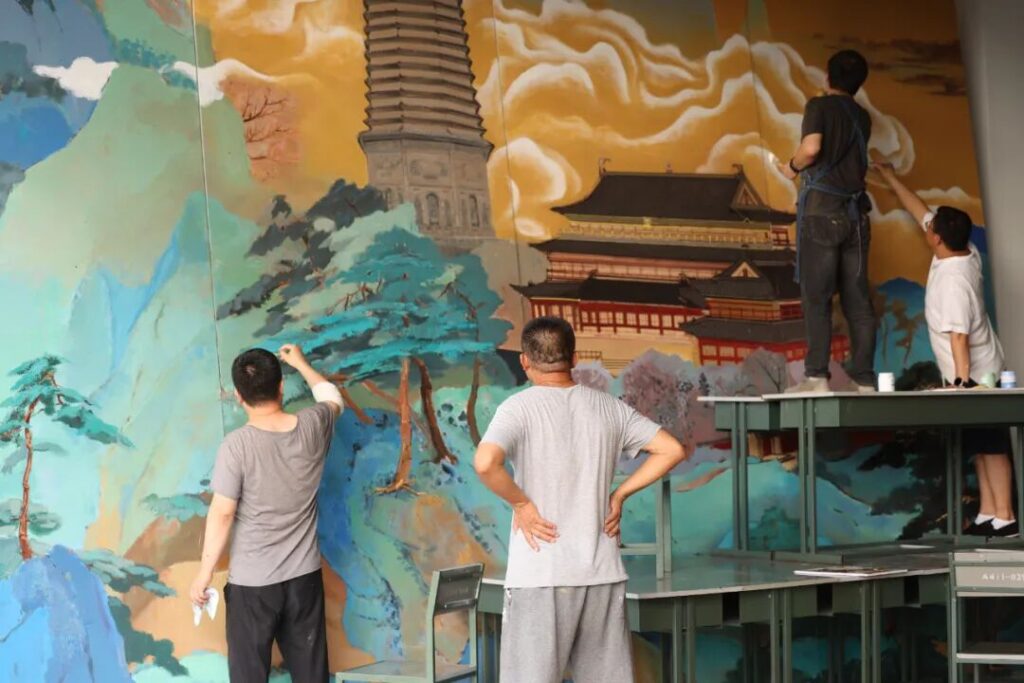 這幅《襄平攬勝》壁畫懸掛於遼陽火車站西站房候車大廳內,畫面集中呈現遼陽眾多著名歷史古蹟與標誌性建築。對市民而言,它是一次重溫家鄉歷史的文化巡禮;對外地旅客而言,則是一張生動鮮明的遼陽文化名片,讓人初到此地,便能一覽古城風華。