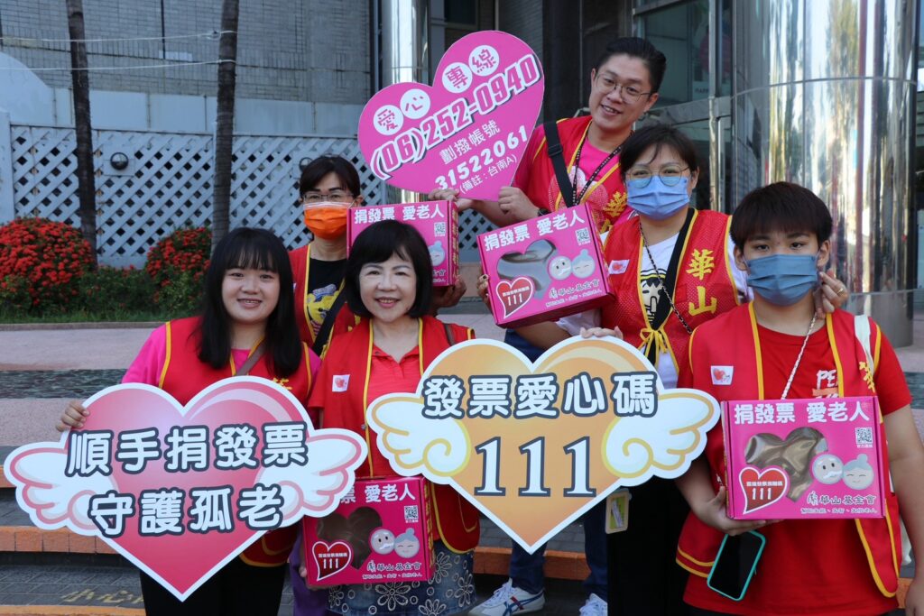每張發票,都是守護長輩的力量。華山基金會電子發票捐贈碼「111」,以「愛老人1+1再+1」為號召,呼籲大眾將小小發票化為關懷行動,成為支持孤老的後盾。華山基金會台南A區「111舞動拐杖節」於台南火車站後站的遠東百貨前廣場快閃,由111位手拿拐杖的老中青義工夥伴,以行動呼喊「愛老人,你+1、我+1、再+1!」