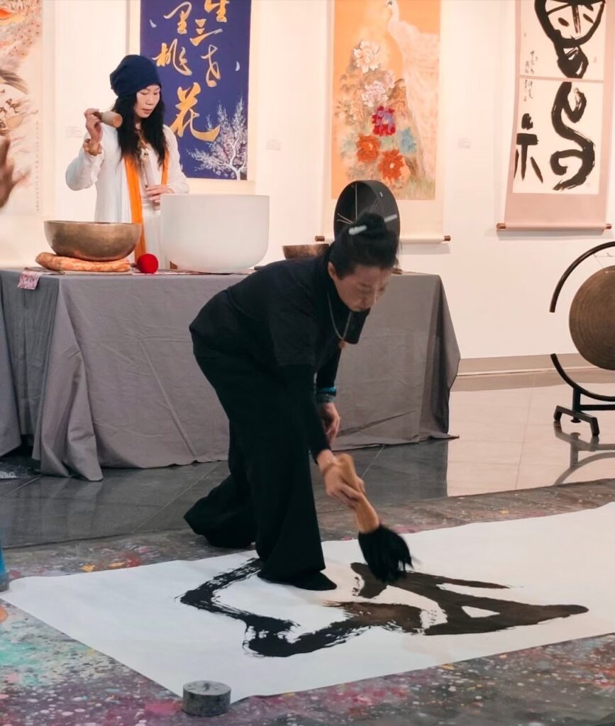 中華書畫協會理事長劉家鑫精心安排的開幕式表演活動,包括中華書畫協會理事林光蕊老師偕同張純綾老師表演的蓮花舞、中華書畫協會總幹事黃俊豪老師琵琶演奏〈成吉思汗〉及〈青花瓷〉樂曲,以及武墨丹青七人小組地書揮毫表演。