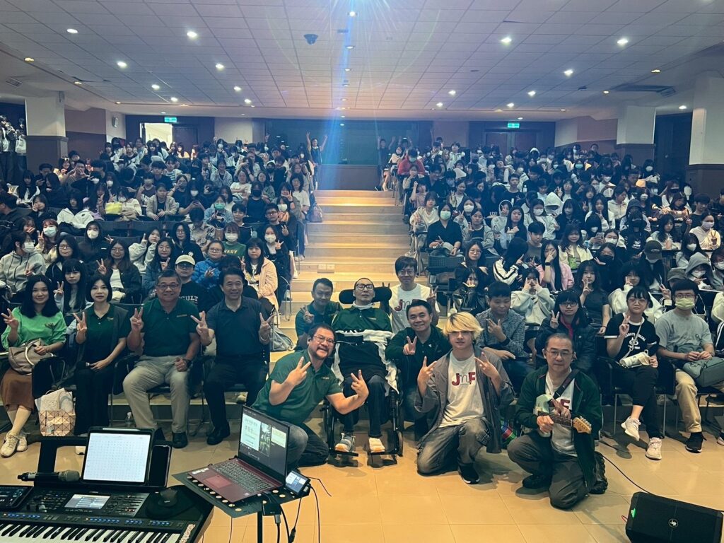 400多位師生一起沉醉在搖滾樂和動人的生命故事裡!愛的小飛俠行動關懷團隊11月5日進駐中華醫事科技大學校園,成員之一的李振全透過音樂創作及個人如何從車禍脊椎受傷、終身須靠輪椅代步的殘酷事實中走出逆境,並藉此呼籲大家一定要注意交通安全、愛惜生命。