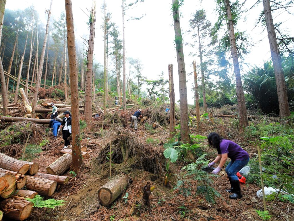 水土保持署南投分署副分署長陳存凱指出:番路鄉公興村土匪山林業生態園區的林班地受到丹娜絲颱風毀部分紅檜、杉木倒塌,我們農村水保署南投分署及民間企業、嘉義大學景觀學系合作一人一樹紮根種樹活動,希望將整個林班地種樹復育,期盼未來這些樹木可以保水固土功效,對整個山坡地的穩定有相當好的水土保持,我們希望結合社區與林業把整個林區環境造的更好,這是我們需要共同努力的方向。
