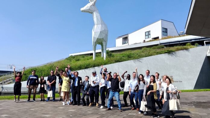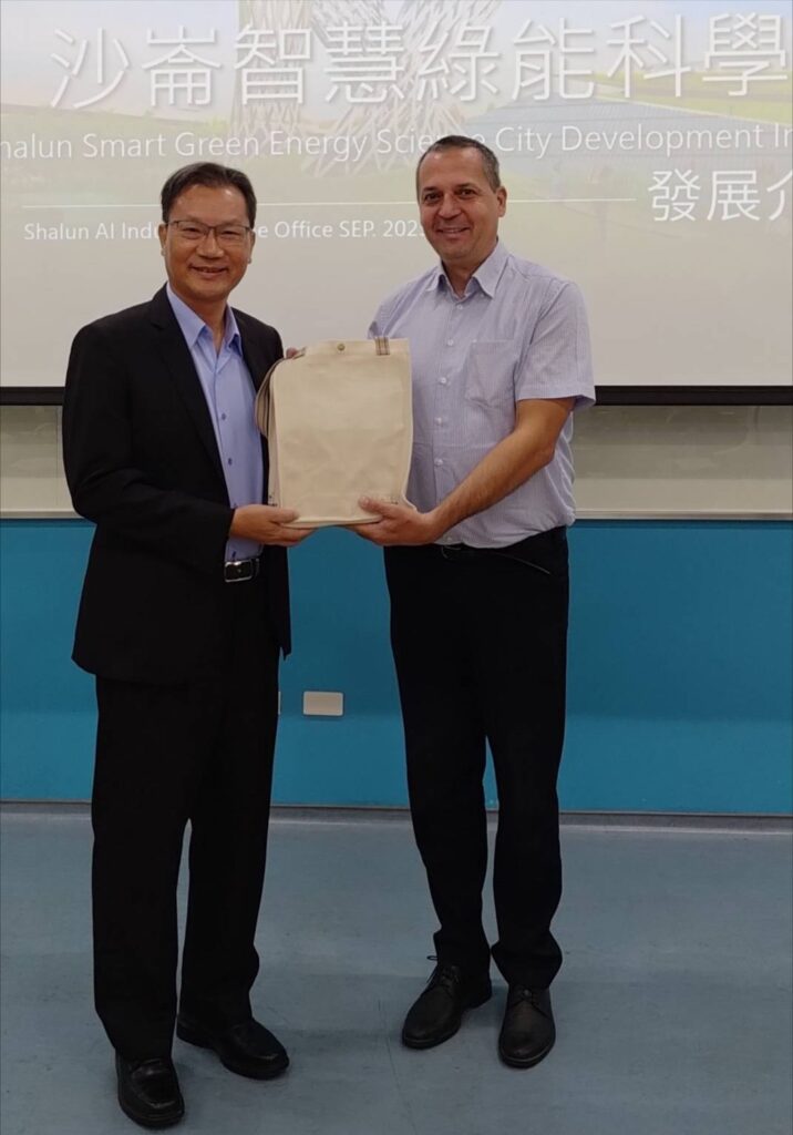 為搶攻全球淨零轉型商機,沙崙智慧綠能科學城5)日迎接經濟部國際貿易署委託外貿協會帶來的國際綠能買主團參訪交流,與臺南在地亮點綠能廠商面對面互動,展現沙崙作為臺灣綠能創新樞紐的國際能量。