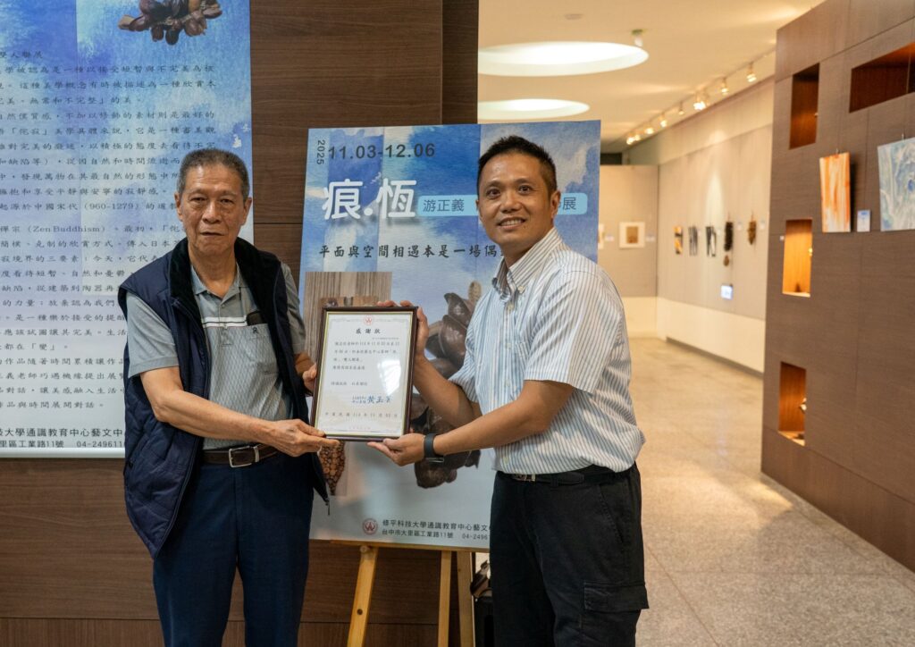 台中修平科技大學於學校藝文中心舉辦《痕.恆》游正義與陳忠信雙人聯展,展覽以「侘寂美學」為主題,呈現自然、時間與生命流動的藝術意境。開幕式由主辦單位通識教育中心主任黃玉菁中心主持,校內出席貴賓包括林倉民董事長、校務顧問林寶琮、校長陳美菁、研發長張振龍、副研發長楊雯惠及圖資長陳威仁等人,現場氣氛優雅溫馨。