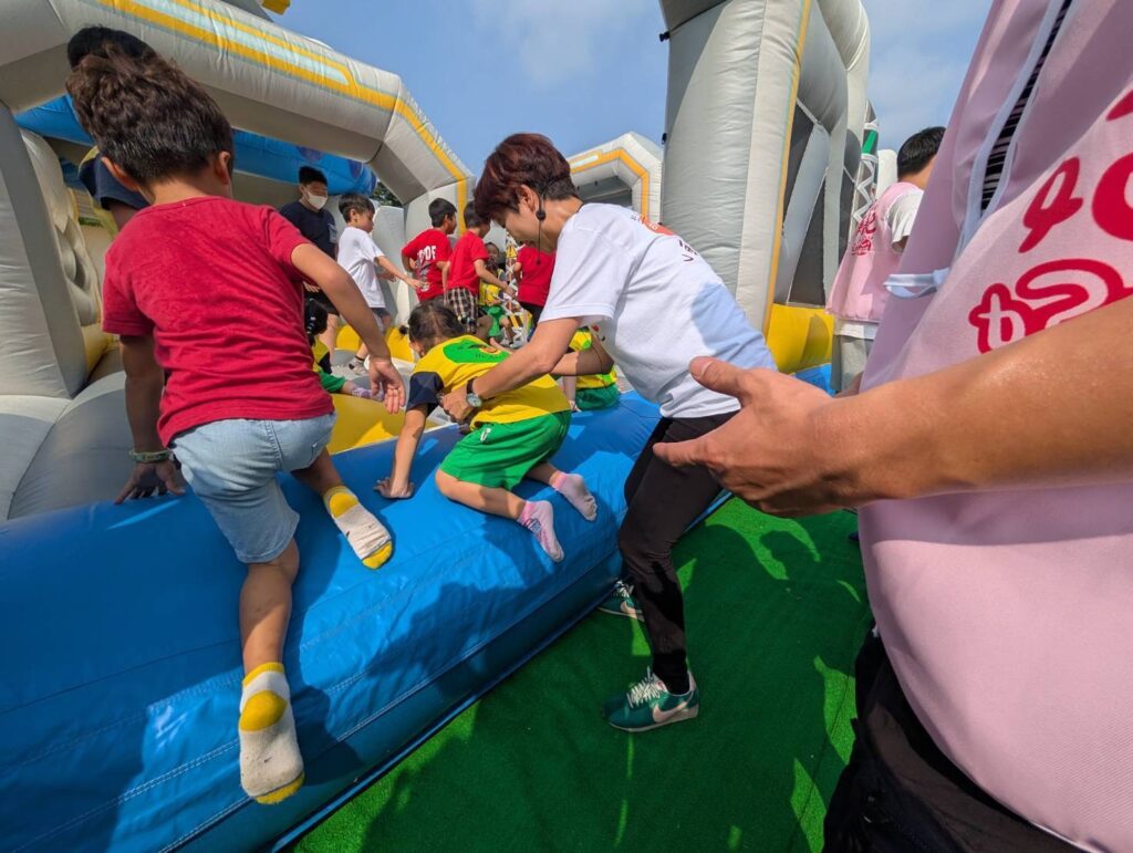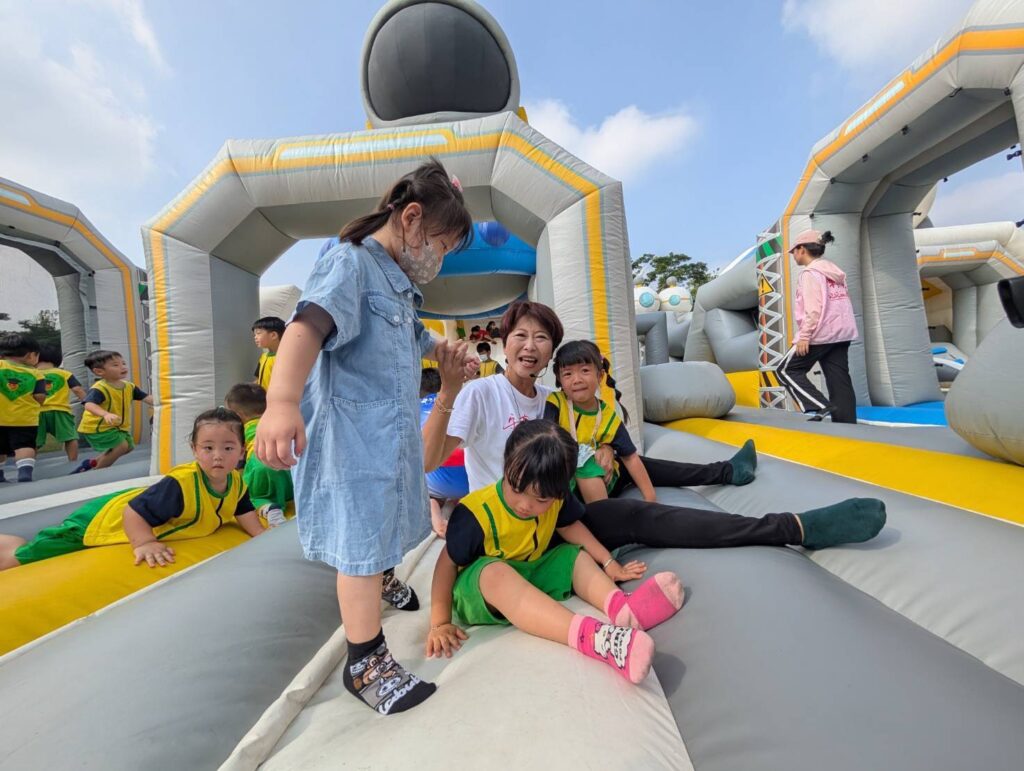 活動現場吸引眾多家庭參與,小朋友在全國最大的太空氣墊樂園中歡笑奔跑,象徵著教育的起點,讓孩子在快樂中學習、在探索中成長,陳亭妃說,親子政策不是點綴,而是城市治理的重要一環,當家庭能安心育兒、孩子能開心學習、老師能受到尊重,這座城市就會變得更有希望。