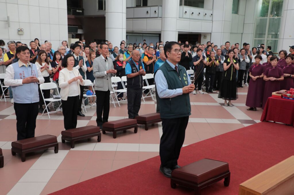 記者會在正式開始前,由市長黃偉哲率各局處首長、宮廟主委與代表進行祭天典禮,開香祈求聖事圓滿,議長邱莉莉亦親自率領全體議員到場共襄盛舉。