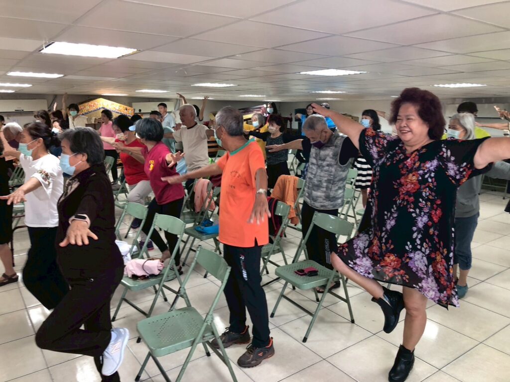 課堂上,郭家宏以幽默的語氣開場:「按摩DIY,自己來,真的沒那麼難!」只需一張椅子、一顆按摩球或一支滾筒,人人都能替自己好好放鬆。講解之間,居民跟著伸展、滾動、按壓,伴隨笑聲與討論聲,彷彿多年累積的疲憊也在轉動中慢慢散開。