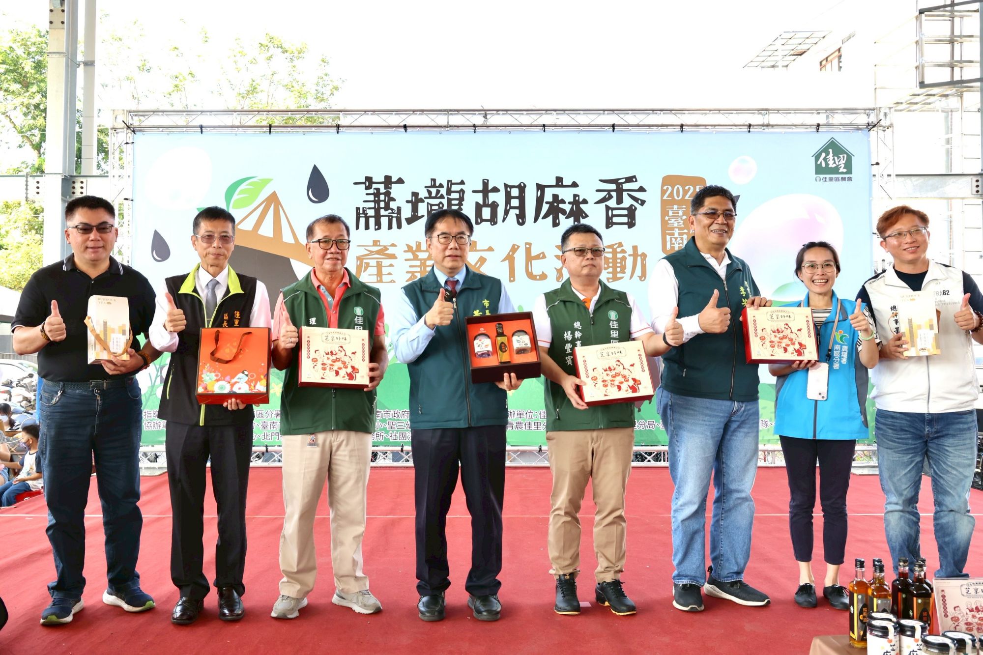 市長黃偉哲表示,台南是國產胡麻最主要產區,原本有西港、善化、安定三大胡麻節,近年又加上佳里,可說是「頂港有名聲,下港尚出名」,胡麻特有的濃郁香氣,深受國人和外國朋友的喜愛。西港與佳里長年推動胡麻契作、加工及品牌行銷,不僅是地方重要的農業代表,也展現農民堅持品質與創新成果,邀請全國民眾來台南,共享胡麻魅力。
