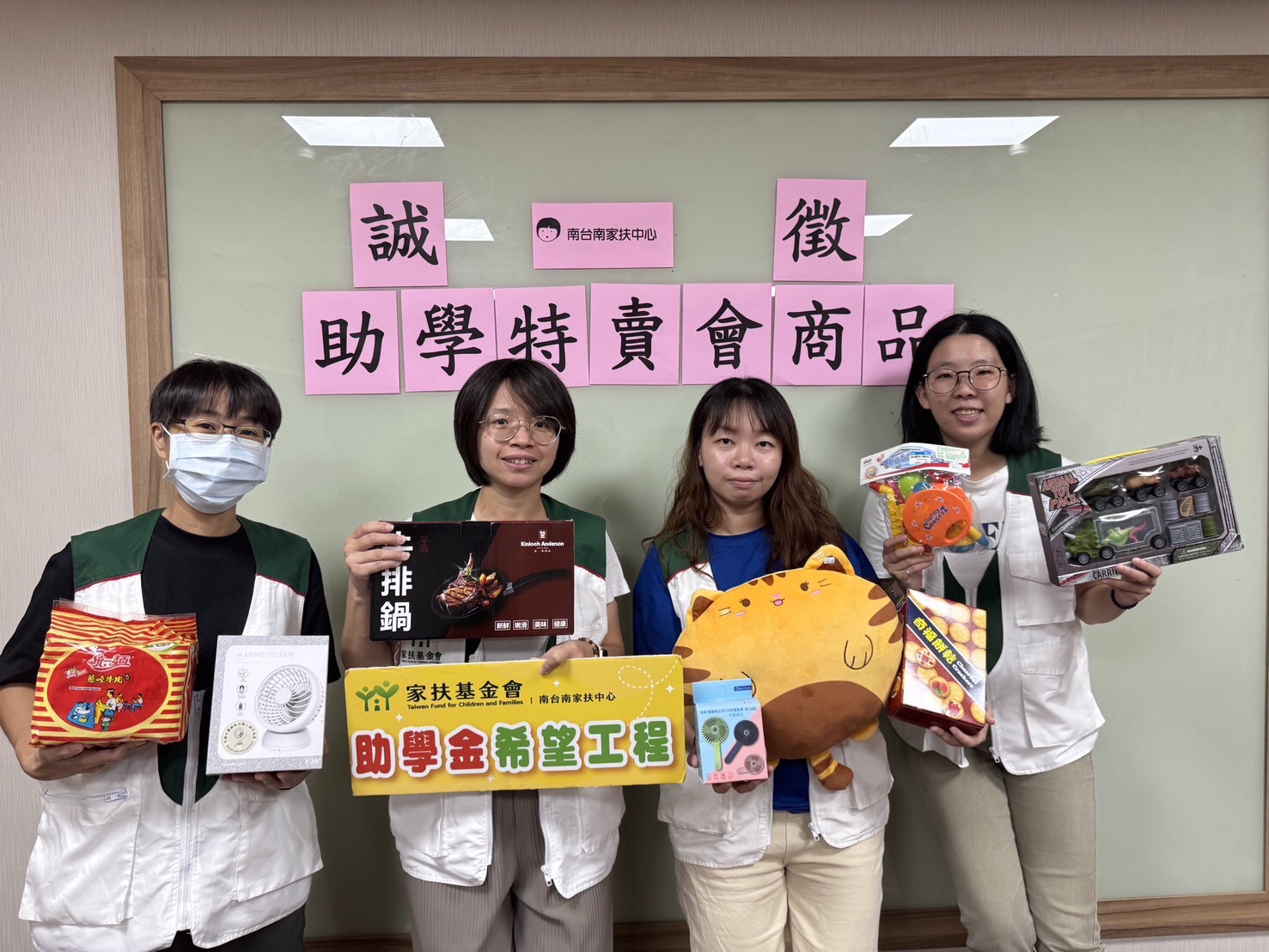 南台南家扶中心每年於寒、暑假開學前都會舉辦「助學特賣會」,活動所得全數作為「助學希望工程」經費,助學特賣會商品收取時間自2025年11月起至2026年1月底止。藉由發放獎助學金鼓勵孩子努力學習,協助經濟弱勢學子順利就學,確保他們不因資源匱乏而失去受教育的機會。