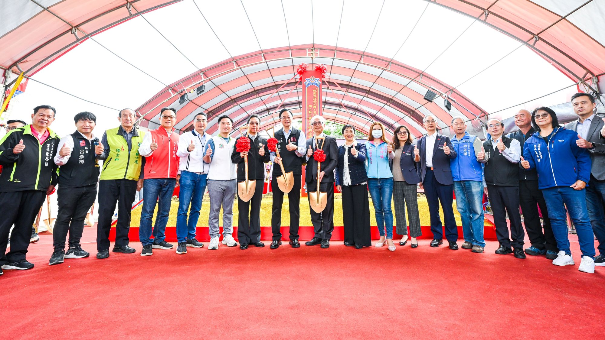 桃園市長張善政21日下午前往八德區,出席「桃園市政府公教人員訓練中心(含警訓中心)暨退輔會職訓中心新建工程開工動土典禮」及「機關採購廉政平臺啟動儀式」。張善政表示,本案工程總經費約16.56億元,預計於117年完工,完工後將由退輔會職訓中心、警察局訓練中心及公教人員訓練中心共同使用,成為本市強化公務與警察專業訓練的重要基地。