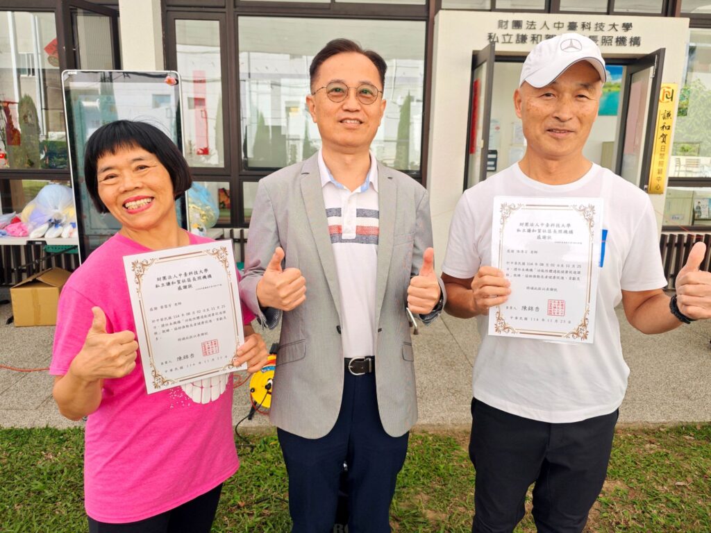 日前舉行的復能運動期中頒獎典禮,多位長輩表現優異,中臺科大校長陳錦杏親自頒獎給得獎長輩,其中,70歲長照需要等級6級的鄭伯伯,在兩個月內累計完成282次復能運動,展現驚人毅力,最終以第二名的優異成績獲獎。他在眾人祝賀中接過獎狀時,因深受肯定而感動落淚,充分展現自主復能的價值與成就。
