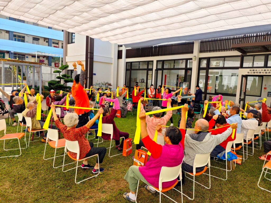 謙和賀日照中心歷經12週共36小時的高齡者功能體適能健康促進課程,11月25日舉辦的成果發表會暨頒獎典禮,由擁有40年體適能教學經驗的黃雪芳老師與陳傳宗老師共同帶領,中臺科大副校長鄭凱元到場致詞,頒發研習證明給參與的長輩,以及頒發兩位授課老師及協助課程的照顧服務員感謝狀。活動中,長輩們亦實際展示10項復能運動成果,其中「坐姿腿部肌力訓練」以台灣傳統名曲〈四季紅〉作為背景音樂,長輩們活力四射的動感展現,贏得全場熱烈掌聲,充分展現課程的成效與活力。