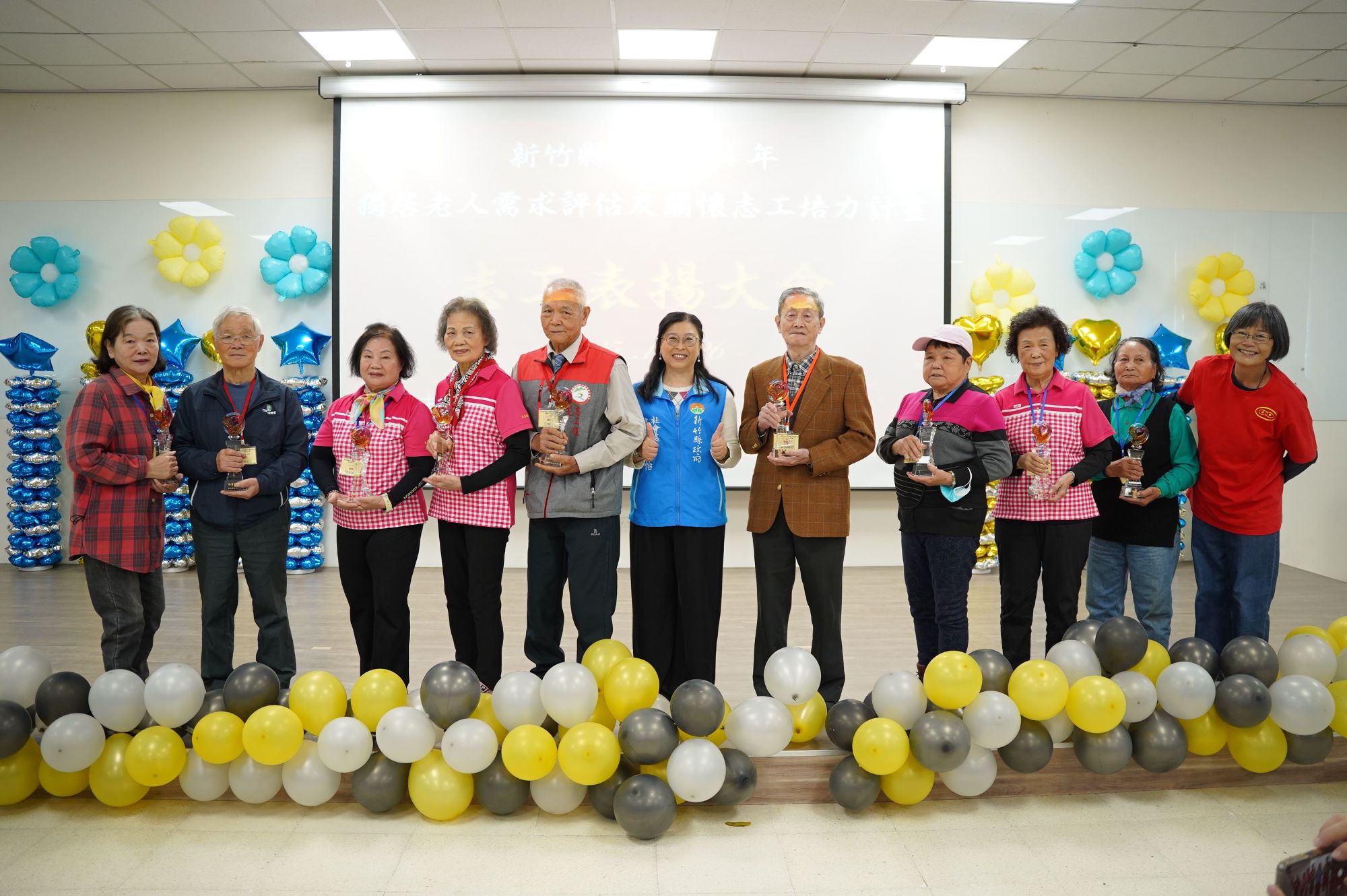 新竹縣政府社會處26日與社團法人臺灣社工人共好發展協會共同舉辦「114年新竹縣獨居長者關懷服務志工表揚大會」,表揚9位年滿75歲、年度服務時數達120小時以上的耆老志工,最高齡的90歲阿公蘇添明身體硬朗,開心自己上台領獎,展現健康活力,讓現場來賓紛紛比讚。新竹縣長楊文科希望每位長輩都能「在地安老、健康樂活」,也特別感謝第一線志工與社區工作夥伴的付出,讓服務更有溫度,共同打造新竹縣為高齡友善城市。