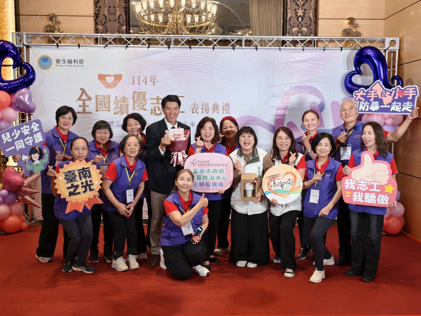 我國響應「國際志工年 IVY 2026」,衛生福利部今(11/28)日在臺北市舉辦「114年全國績優志工表揚典禮」,聚焦全國各地在不同領域默默奉獻的志工夥伴,感謝他們長年以行動支持社會服務、實踐公民力量。今年典禮中,臺南市共有4個志工團隊及14位志工獲得國家級肯定,展現「志工之都」豐沛的服務能量。