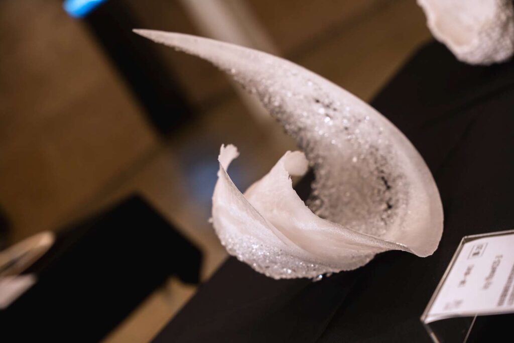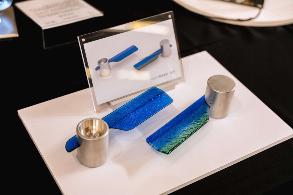 文化局指出,本屆得獎作品呈現出豐富而多面的創作語彙。最高榮譽-金玻獎由來自日本的加藤千佳獲得,得獎作品「icy flow #25-3」,呼應本屆主題「無界介質」,以雪消融的片刻為題,嘗試展現玻璃作為感知與現實之間通道的可能性。藉由將短暫的美封存於玻璃之中,使自然的記憶得以傳遞至未來,並開拓玻璃作為媒介的無限可能。單一媒材類第一名梁丞的「摇光」,以傳統樂器「磬」為靈感,透過一體成型的玻璃鑄造展現光影、形體與文化意象的融合。作品可因互動產生共鳴,讓觀者在視覺與聲音的體驗中,與古代樂禮精神進行對話。