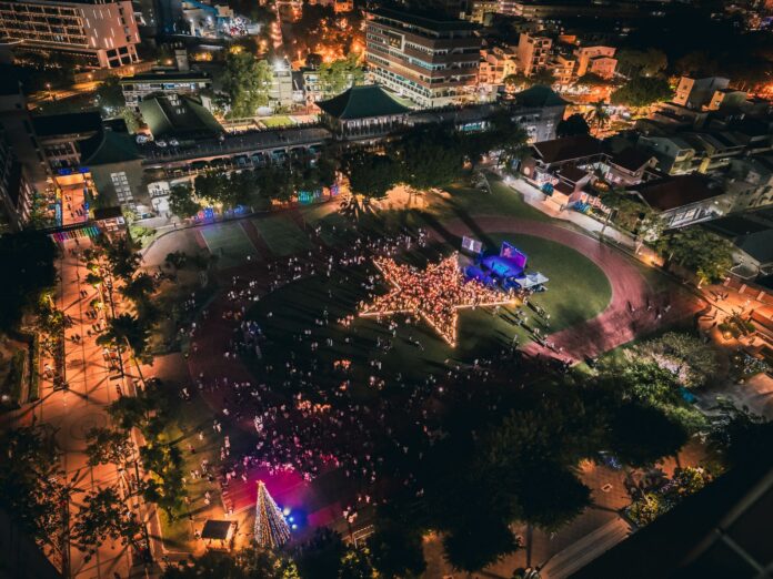 為迎接聖誕節到來,文藻外語大學12月1日晚間舉行一年一度的將臨期燃燈禮,主題為「家‧愛的所在」,近千名師生與校友齊聚操場,手持燭光排成一個巨型星星,在倒數聲中同步點亮高達12米的聖誕樹。燭光照亮整個夜空,也象徵文藻邁向創校60周年的璀璨。