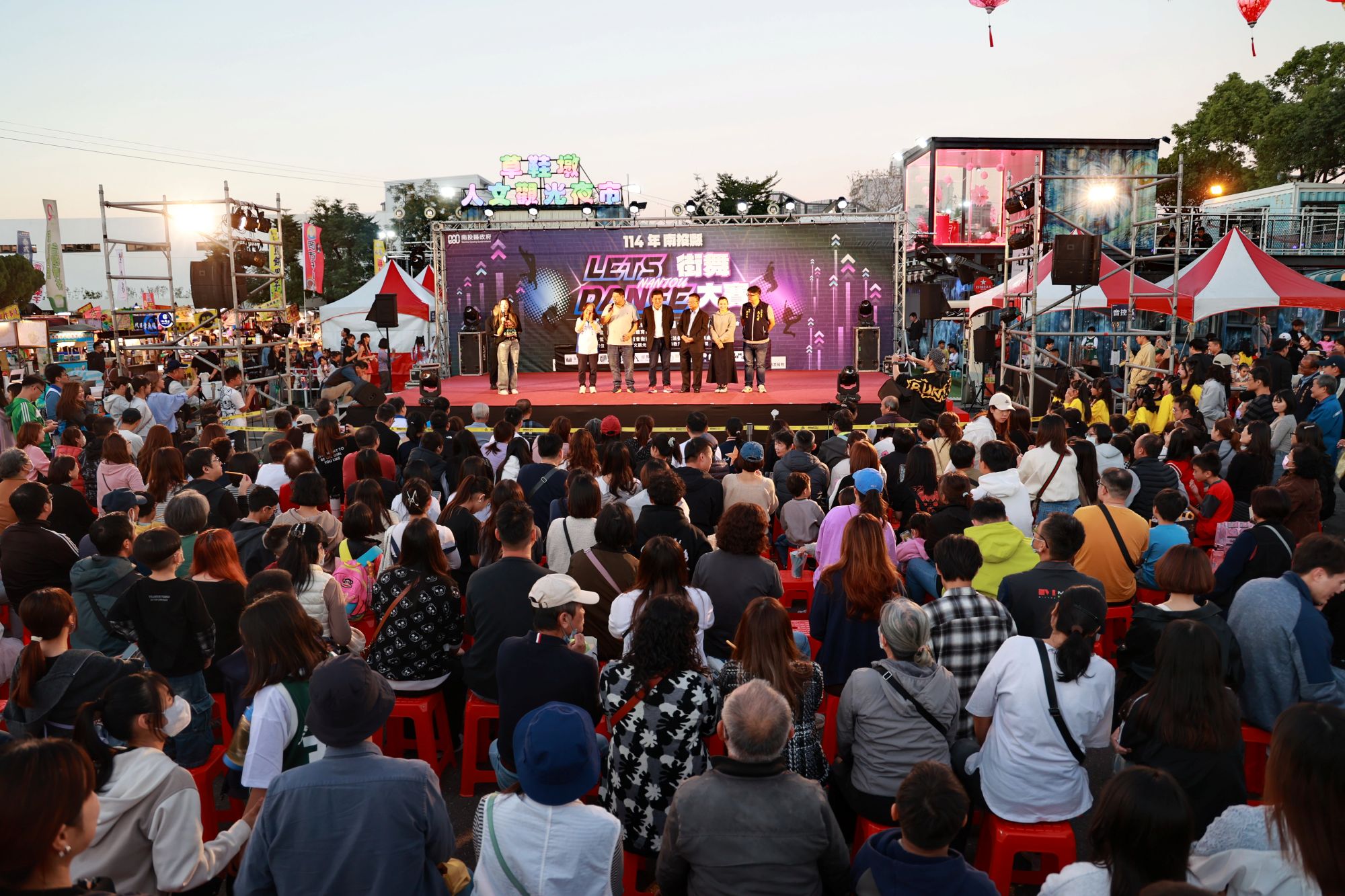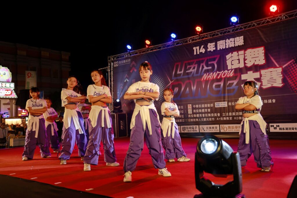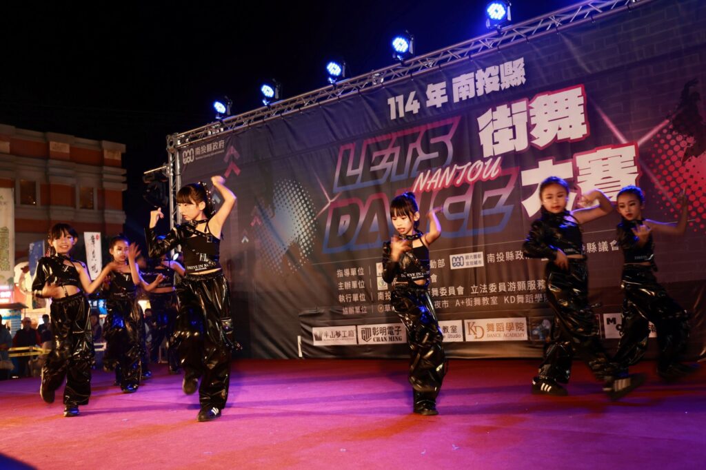由南投縣體育會主辦的「114年南投LET’S DANCE街舞大賽」,6日下午5時在草屯寶島時代村夜市熱鬧登場,吸引國小、國中、青年組共33組、近300名選手同場較勁,現場人潮洶湧,成功帶動消費。