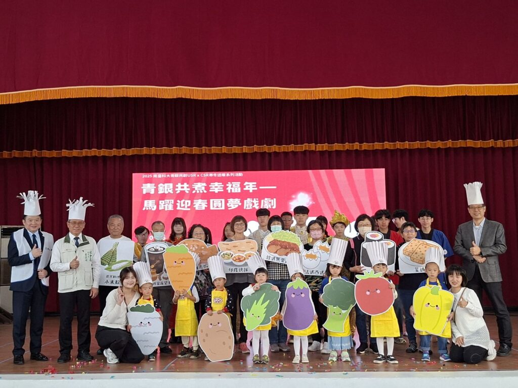 臺南市長黃偉哲率領市府團隊打造高齡友善城市,積極佈建社區照顧關懷據點服務長輩,今年社會局再度與富邦人壽及南臺科技大學攜手,持續打造USR「青銀共創打造在地智慧自在不老力計畫」合作,推動多項跨世代關懷與幸福延續的行動,發揮社會影響力,由產、官、學三方合作辦理「青銀共煮幸福年 馬躍迎春圓夢戲劇」活動,10日社會局葉誌明副局長,特別到南區四鯤鯓龍崗國小禮堂與弱勢長輩同樂,並頒發感謝狀給南臺科技大學、富邦人壽、台灣高齡照護暨教育協會、信福長照服務企業有限公司及臺南市菩薩殿關懷協會,感謝這些單位共同關心弱勢、獨居長者。