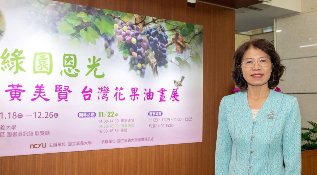 長榮大學副教授黃美賢應國立嘉義大學之邀,於該校106週年校慶黃金檔期舉辦《綠園恩光》台灣花果油畫展,即日起展出50件作品,展期至12月26日。黃美賢老師擅長描繪台灣各地田園中的花果風采,精彩畫作被譽為凝視「水果王國、花卉之島」的一扇窗,值得大家到場欣賞。