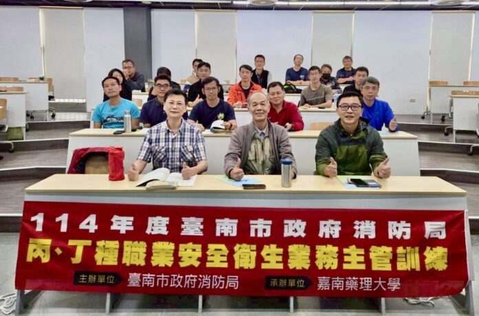 消防局指出,本次訓練委託嘉南藥理大學辦理,丙、丁種安全衛生主管訓練是我國一般事業單位負責人或指定人員需接受的基礎職業安全衛生管理訓練,由嘉藥大學職業安全衛生系專業師資,深入淺出將職場風險管理觀念、職業安全衛生相關法規帶入課程,並以實際工安災力進行講解,全面提升消防人員工作安全意識。