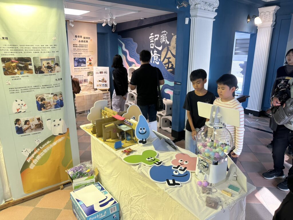 本展除原本藏金閣循環再製文創商品外,亦結合7家企業提出真實永續挑戰,跨足材料循環、無毒教育、情緒健康、弱勢兒童關懷等面向;並串聯成功大學及國中小,共60位大學生與60位小學生共同參與,以「企業出題、學生解方、校園擴散」模式,形塑跨世代永續教育的全新合作框架。