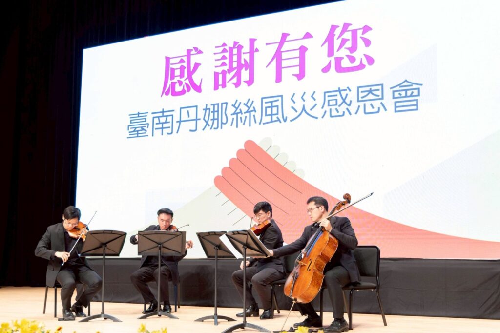 感恩會以音樂演出揭開序幕,透過溫暖旋律傳遞希望,象徵風雨過後城市逐步重建、邁向復原。