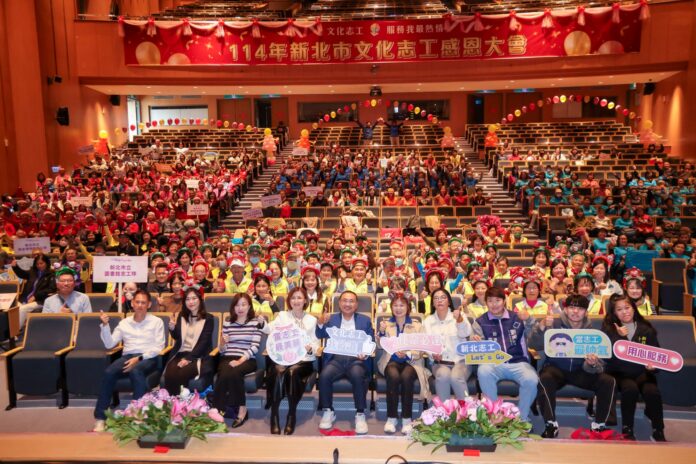 新北市長侯友宜14日出席「114年文化志工感恩大會」,頒發感謝狀及獎項,肯定文化志工長期投入新北在地藝術與文化推廣的付出。侯友宜表示,文化志工是推動文化藝術的重要力量,不僅促進文化交流、接軌國際,也讓新北市各個角落充滿文化氣息,期盼更多市民朋友加入文化志工行列。