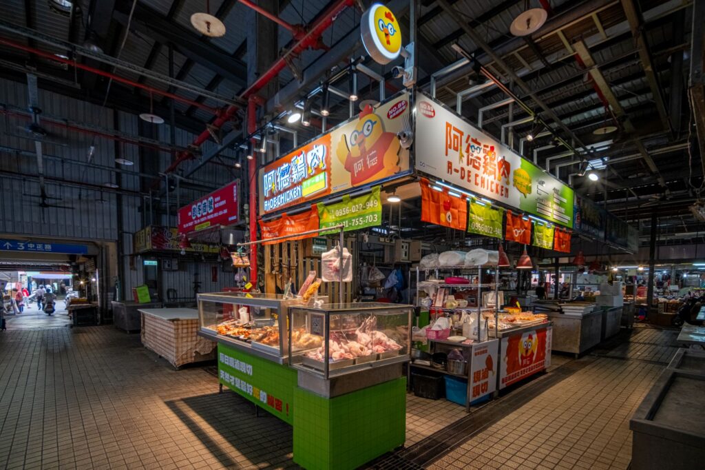 攤舖位的改造著重在攤台與招牌更新、展售台美化 (圖為學甲市場阿德雞肉)