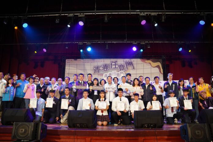 新竹縣政府教育局19日在縣府大禮堂舉辦《青春任意門》成年禮活動,邀集縣內10所高中職學校學生參加,以「大膽竹夢,青春同行」為主題,匯聚青年競演、古禮儀式、名人放大絕等精彩環節,並由副縣長陳見賢、教育局副局長林益洲、10所高中職校長及學生一同留下「責任印記」,象徵學子們從青澀走向成熟,肩負起未來挑戰的使命。