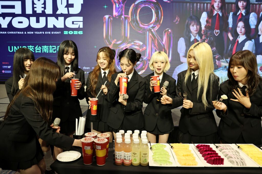 超人氣女團UNIS面對市長黃偉哲端出的蜜棗、紅白火龍果、小番茄、椪柑、鳳梨、洋香瓜等當季水果及小蕃茄糖葫蘆、果乾還有珍珠奶茶,成員們都躍躍欲試,紛紛用學到的中文大讚好吃;UNIS不只對台南美食很感興趣,對於台南的景點也充滿好奇,並期待透過精彩的演出,為前來欣賞的粉絲帶來滿滿的能量與感動。