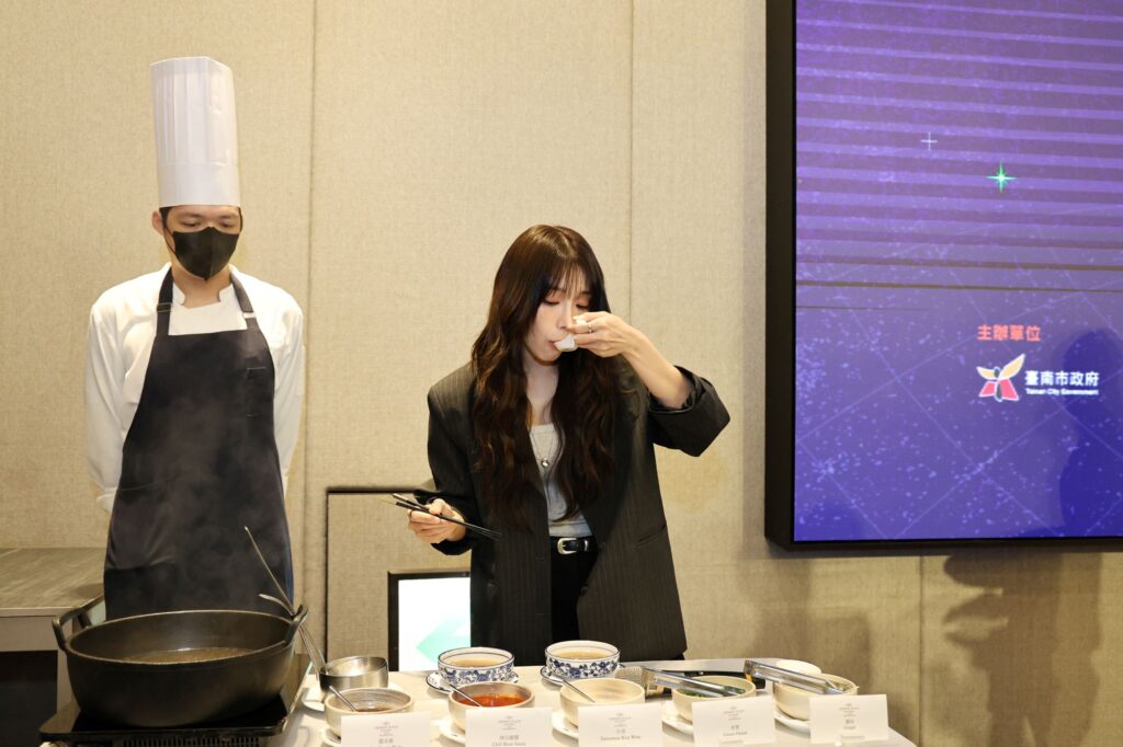 市長黃偉哲得知鄭恩地喜愛牛肉麵,現場特別準備台南代表性美食之一的清燙牛肉湯款待。
