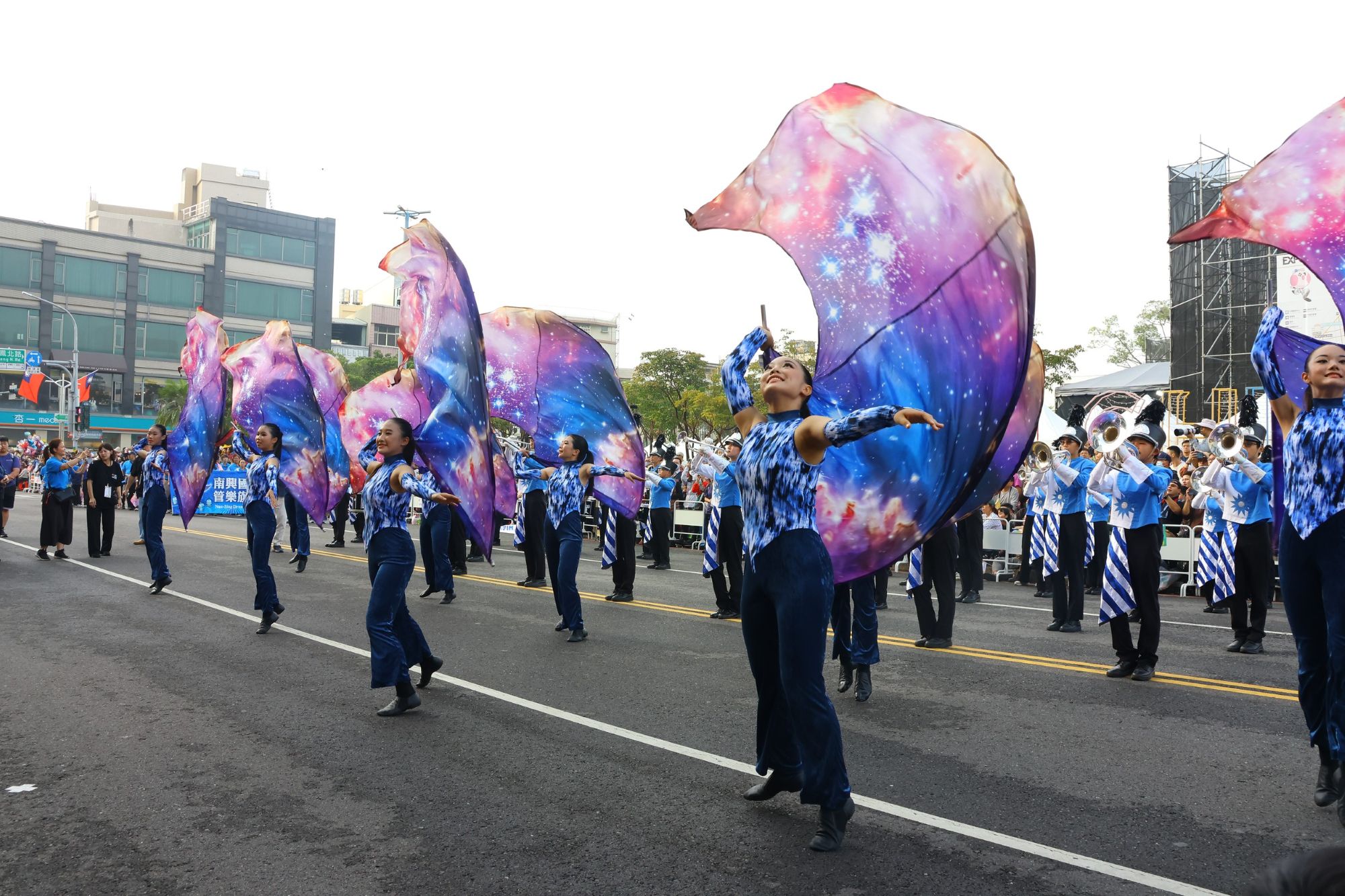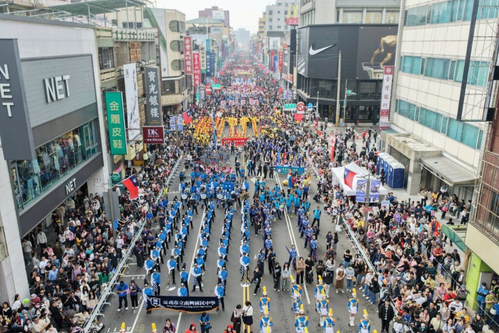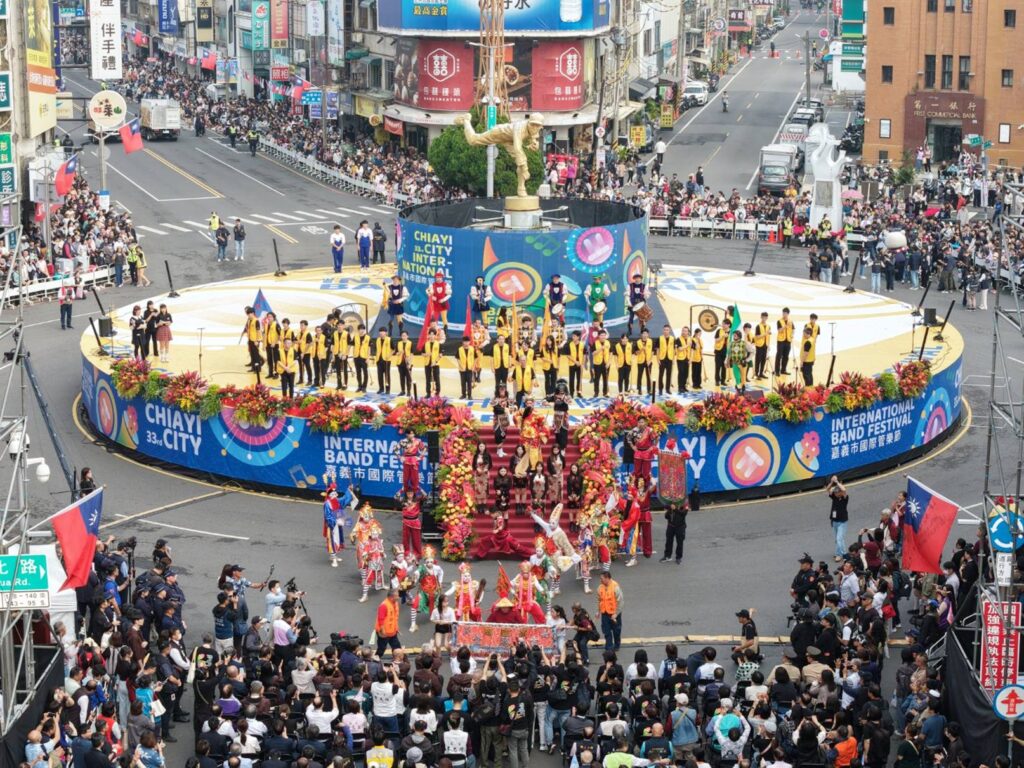 國際團隊的踩街演出同樣吸引目光。來自日本的奈良學園大學行進樂部以青春洋溢的動感演出獲得滿場喝采;連續28年榮獲金賞的熊本工業高校吹奏樂部以精準步伐與震撼音場掀起高潮;首次來臺的香港普音步操樂團與格蘭風笛聯合樂團,融合步操鼓與蘇格蘭風笛,展現罕見的跨文化音色;韓國濟洲海女歌舞團則以百年海女文化為創作核心,透過歌舞與象徵性動作,細膩呈現人與海洋共生的文化故事。多位國外團員表示,嘉義市民的熱情回應令人難忘,沿途不斷的掌聲與加油聲,成為最珍貴的演出能量。