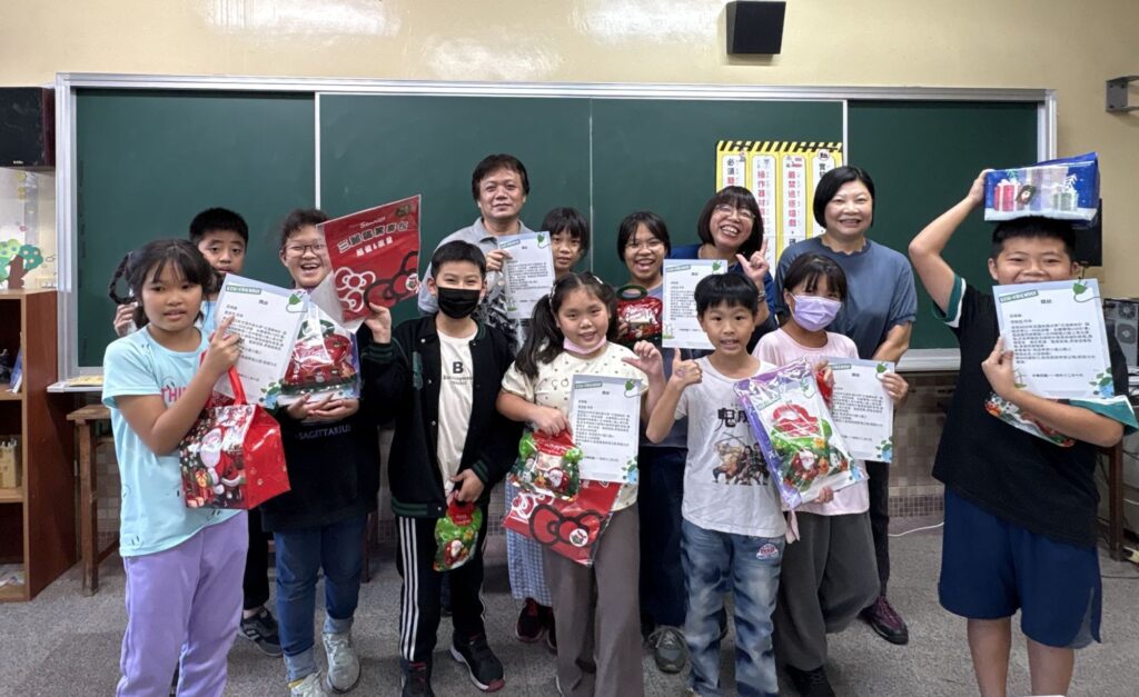 活動由文藻外語教學系副教授藍美華率領團隊展開,首站來到蚵寮國小,為參與創意英語線上課程的10名學童舉行期末活動,並頒發「英語小達人」與「英語堅持小超人」等獎項,肯定學生在課程中的投入與成長,同時送上期初承諾的驚喜禮物與聖誕小禮,肯定學生在英語學習中的努力,以及勇於表達自我與不放棄的精神。