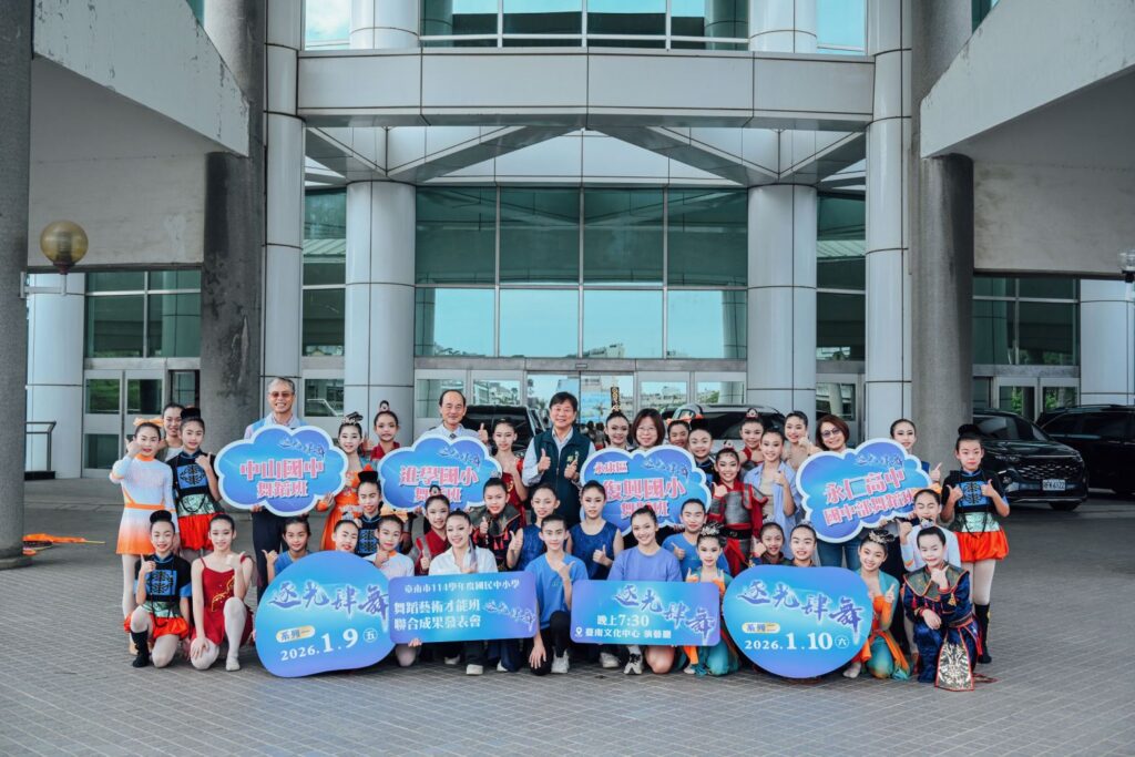「逐光肆舞」臺南市114學年度舞蹈藝才班聯合展將於1月9日及10日在臺南文化中心演藝廳舉辦,教育局長鄭新輝率領永仁高中國中部、中山國中、永康區復興國小及進學國小4校舞蹈班校長與學生共同入鏡拍攝宣傳影片,為活動揭開序幕。今年舞展採兩場接力演出形式規劃,舞碼編排與舞台燈光全面升級、創意十足,勢必帶給觀眾嶄新的視覺震撼,精彩可期、不容錯過。