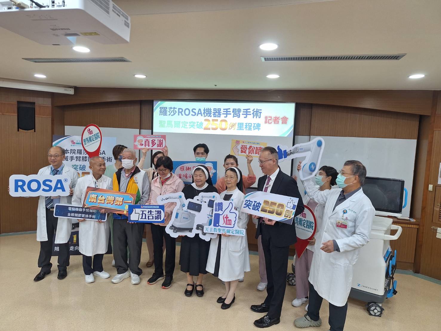 聖馬爾定醫院自2018年於院內完成首例MAKO半膝人工關節置換術,迄今已七年,院方於2023年引進 ROSA 機械手臂系統,應用於全人工膝關節置換手術,現已累積超過250例,創下南台灣各級醫院中最多手術量的亮眼紀錄。23日特舉辦「機械手臂系統關節置換 突破250例」記者會,不僅象徵醫療技術的全面升級,也為退化性關節炎患者提供了新的治療希望。