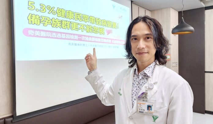 奇美醫院婦產部主治醫師徐英倫表示,許多民眾誤以為「家族裡沒人生病」就代表沒有遺傳風險,但臨床上許多罕見遺傳疾病的病童,其父母往往都是健康的「隱性帶因者」。根據2024年發表的最新臺灣本土基因研究,約有5.3%的無家族病史民眾被檢測出帶有具臨床意義的致病基因變異。臺灣族群中,約每5人就有1人(21.6%)帶有聽損基因(GJB2)變異!隨著基因定序技術的進步,現代醫學的「擴展性帶因者篩檢」,準父母可藉由一次抽血,篩檢數百種隱性遺傳疾病,將被動的「接受命運」轉為主動「管理健康風險」,替下一代多一層保障。